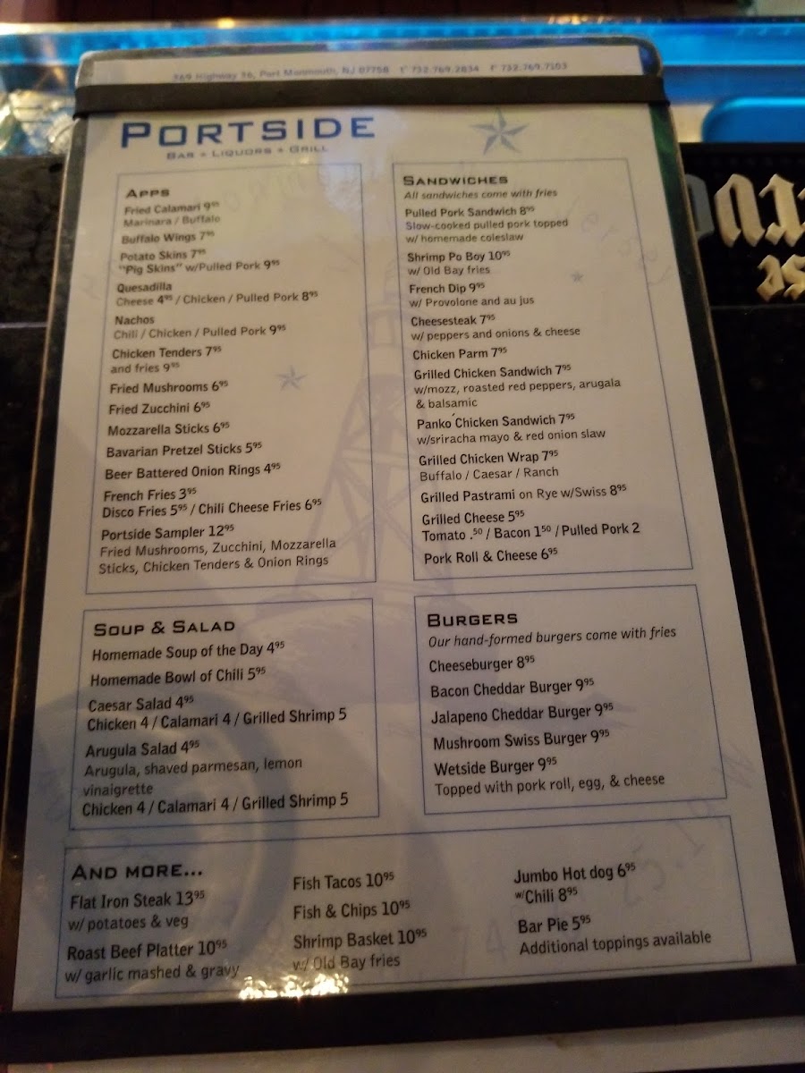 Welcome to Portside Bar & Liquors, a hidden gem located at 369 NJ-36, Port Monmouth, NJ. This cozy bar offers a lively atmosphere where locals gather for great food and drinks. The menu is diverse, featuring delicious options from savory soups and salads to mouthwatering burgers and hearty entrees.